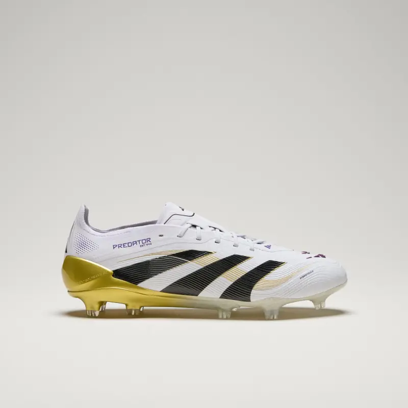 Discover the difference between aiming to score and knowing you will with adidas Predator cleats that are crafted for goals. These Elite cleats have a HybridTouch upper with strategically placed rubber Strikeskin fins that provide perfect contact with the soccer. The Controlframe 2.0 firm ground outsole and adidas PRIMEKNIT collar are designed to give you a stable stance when the goal’s at your mercy.