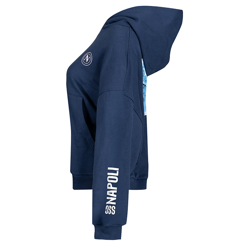 The Marechiaro Navy Blue Hoodie, 100% cotton and Made in Italy, is an icon of comfort and Neapolitan style. Soft, warm, and with a clean design, it is made for those who want to live Naples with grit and authenticity, carrying with them the energy of the sea and the passion for football.