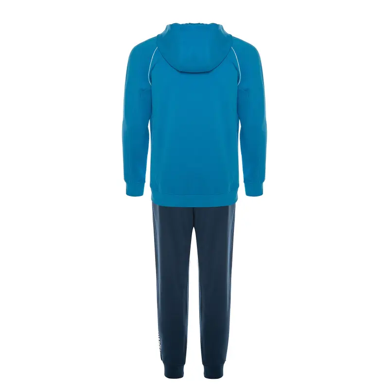 The top of the tracksuit comes in Sky Blue — a bright and distinctive shade — and features a comfortable hood for added protection and style. It has a full-zip closure, allowing for easy adjustment depending on needs and weather conditions.